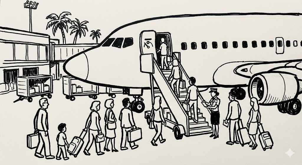 ✈️ Airport Scene Coloring Page - People Boarding Airplane