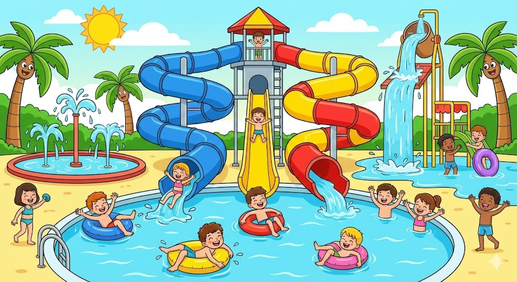 Join the fun at the playground with this exciting water slides jigsaw puzzle! Piece together a vibrant scene of happy kids playing and having fun on thrilling water slides at an amazing playground. This engaging puzzle captures the joy of outdoor play, water activities, and childhood adventures while helping kids develop problem-solving skills. Perfect for children who love playgrounds, water slides, and fun outdoor activities. Complete this lively puzzle and relive the excitement of playing on water slides with friends at the playground.